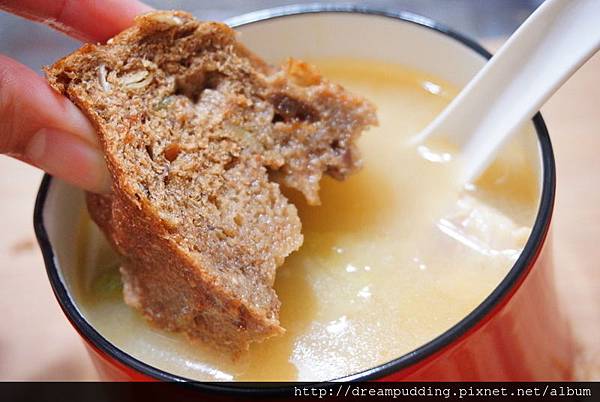 用麵包沾取湯汁,除了麵包本身的麥香跟樸實,還多了湯汁的濃郁,吃了幾片再加上湯品,一整個就是飽足到不行>////<