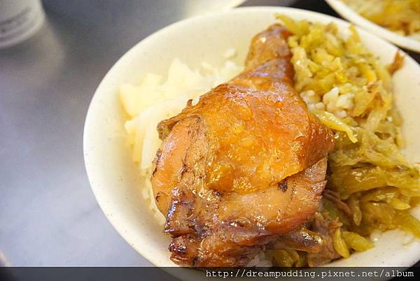 雞腿飯非常好吃!他的雞腿滷到十分入味,皮嫩肉緊緻卻又帶點香軟,是很好吃的雞腿。