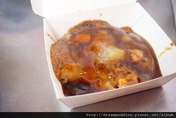 台南的碗粿跟台中不同,是深色的醬色。口感上入味軟嫩,而且還吃得到豬肉塊,是蠻多料的碗粿。