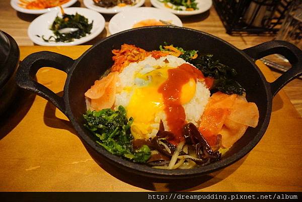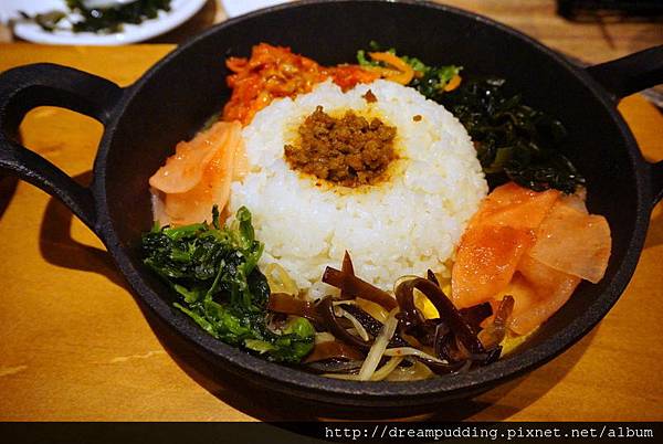 鋪上滿滿的小菜就成了韓式拌飯了,好久沒去韓國了,只好先吃拌飯過癮>////<
