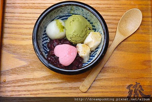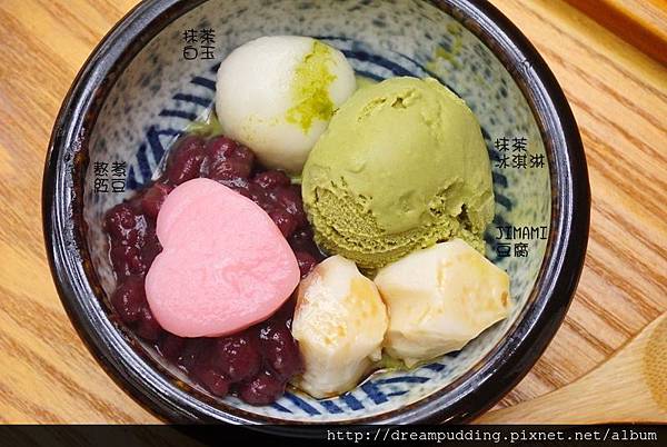 有自家熬煮紅豆、抹茶白玉、抹茶冰淇淋、JIMAMI 豆腐。紅豆軟硬度適中,香甜好吃;抹茶白玉軟Q;冰淇淋茶香濃郁潤甜;JIMAMI豆腐是沖繩極富魅力的食材,是用花生榨出的豆漿製成的手工豆腐,口感軟Q近似麻糬卻又不黏牙,淡淡的花生香氣,我跟同行的友人都喜歡極了。