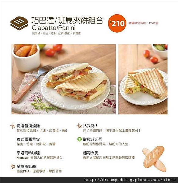 餐點種類很多耶,我跟友人一直都猶豫再三,主要都是以早午餐為主,今天寫文看米閃的粉絲頁才發現8月要換新菜單,所以菜單會有更新喔!因為我跟友人去的時候還是舊菜單,所以還是在粉絲頁擷取了舊菜單寫文。