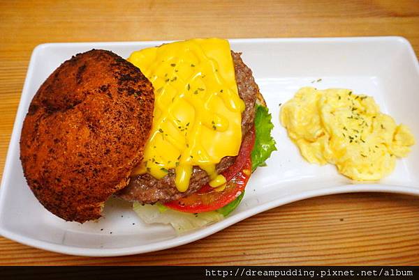 漢堡包的麵包體鬆軟輕盈,牛肉帶有些微肉汁,肉味不會太重,搭配牛番茄跟生菜不膩口。