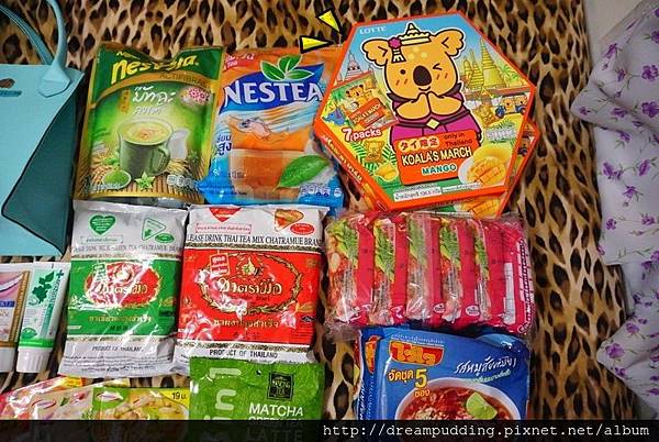 圖片左上角是泰國限定的無尾熊芒果口味,有著甜蜜芒果香的餅乾很好吃,大型超市就有賣了喔,沒記錯好像是100泰銖上下,裡面有7小包。