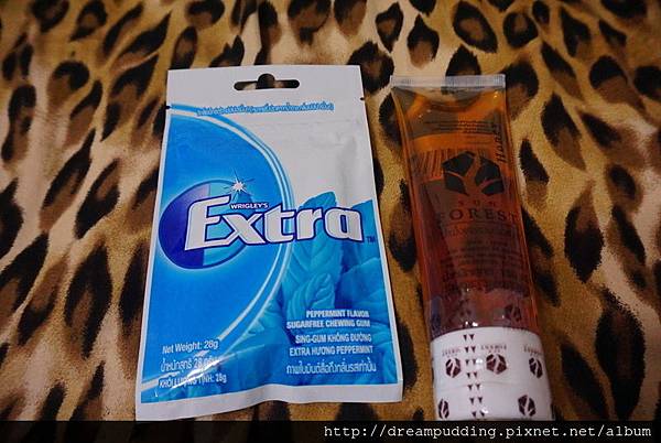 泰國的EXTRA很便宜,我記得好像才泰銖19還25,不過吃起來比較不會那麼涼就是;右手是在超商買的蜂蜜條,記得是幾十元的銅板價;也是買不到皇家牌蜂蜜,所以買了別牌的>////<,可以隨手帶出門,買綠茶時自己加蜂蜜變成蜂蜜綠茶,不用在外面加10塊升級這樣@@
