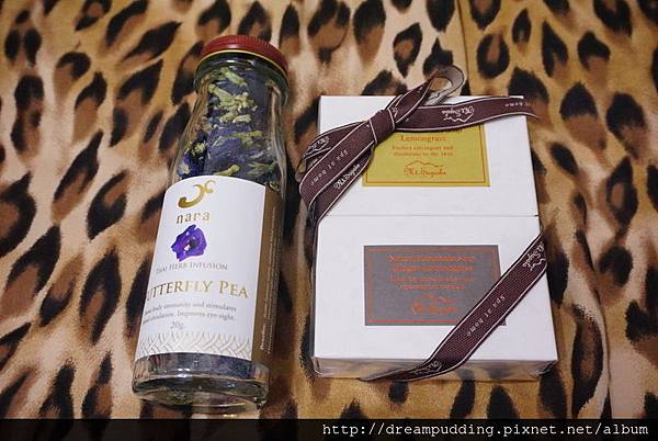 瓶裝的薰衣草花果茶葉是女神送的禮物,茶葉放在瓶子裡好有質感;右手邊也是手工香氛香皂,在百貨公司裡買的,價位也很平價,雖然是百貨專櫃,但價位也不會讓人驚嚇,記得一塊香皂好像是泰銖100多的樣子,跟台灣的手工香皂價格差不多。