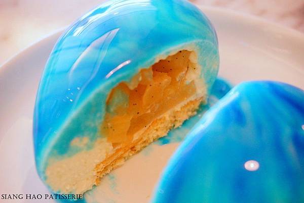 這款愛心鏡面蛋糕每日的鏡面都不一定會一樣喔!這天恰好是我最愛的粉藍