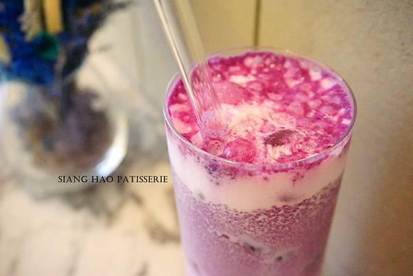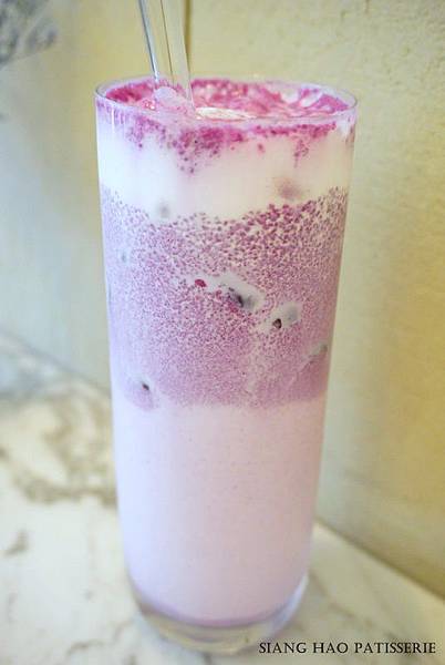 紫薯拿鐵顏色漸層的很柔和且美麗,口感很濃郁,甜得很細微。
