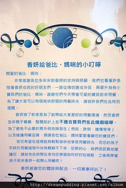 香妍不是親子餐廳,用餐也需要花比較多的時間,所以如果要帶小朋友,建議還是考慮一下喔!還有香妍也是預約制餐廳,所以想前來用餐,記得先打電話預約喔!