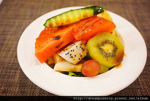 水果沙拉每樣都新鮮帶甜,搭配的是老闆娘精心熬煮的紅酒醋,酸中帶甜,吃完水果之後還把那融合水果鮮甜的紅酒醋喝到一滴都不剩。