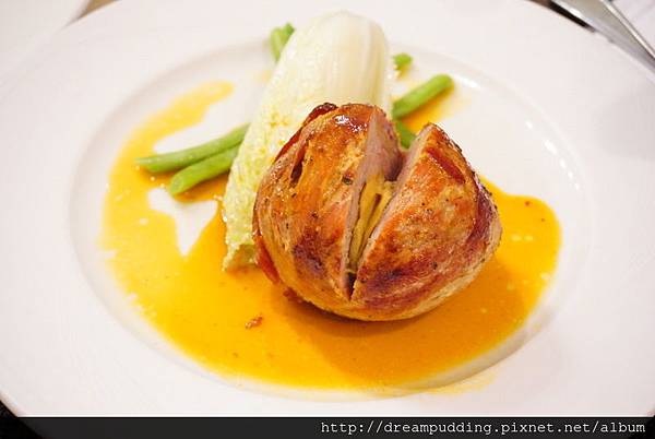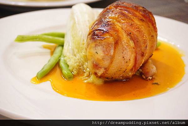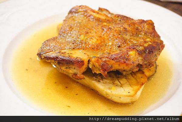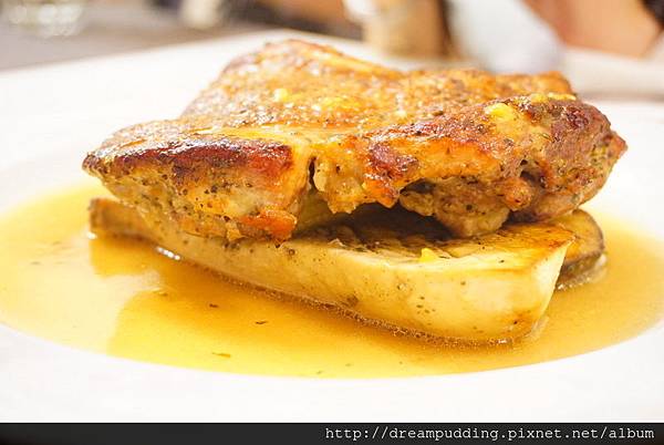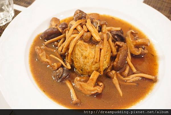 似乎加了紅酒跟菇類下去熬煮醬汁,嚐起來香甜多汁,這道我也好喜歡。