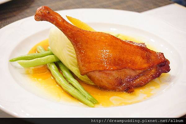 煙燻風味鴨腿佐香橙醬汁,NT 750元。