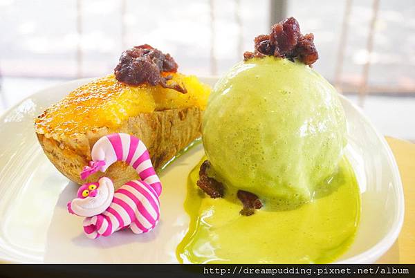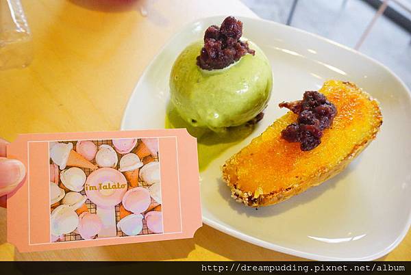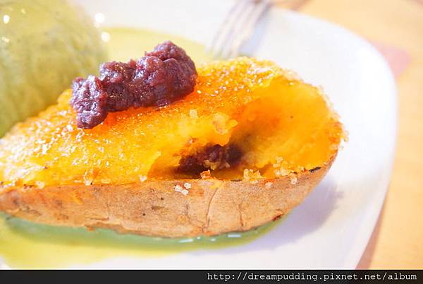 爐烤蜜紅豆地瓜搭配抹茶冰淇淋(限量),看到限量當然就是點了,是說這道也是現點現製作,地瓜需要烤,所以製作時間會比較久一些喔