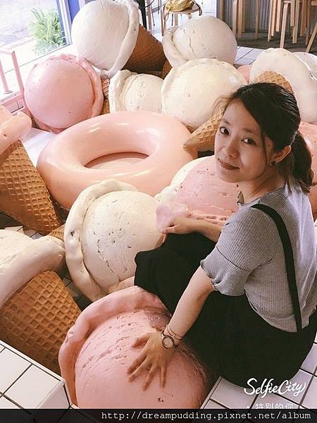 吃完就趕緊來冰淇淋游泳池拍照啦(奔)