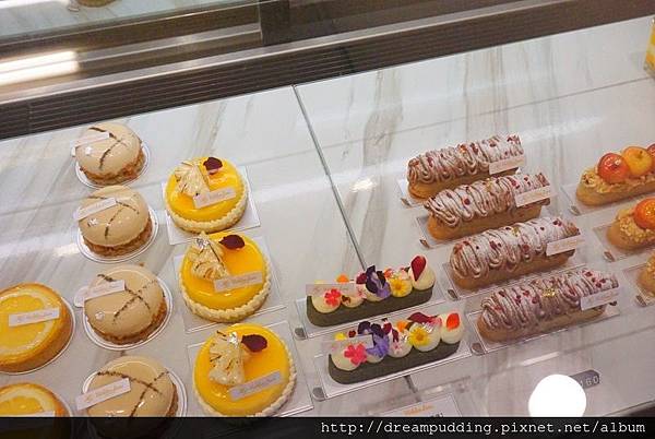 一進來會先看到繽紛的甜點櫃,每個甜點都像藝術品似的,每款甜點最前方都有口味說明,如果有不清楚的,也可以詢問服務人員。