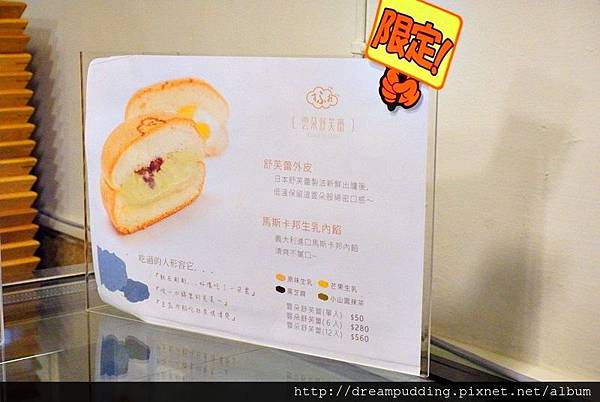 原料使用馬斯卡邦生乳、日本麵粉、法國鮮奶油...等。口感輕盈棉柔且甜得很細微。