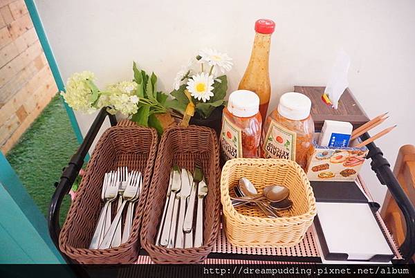 沒有收服務費,餐具跟調味醬都放在一區讓顧客自取。