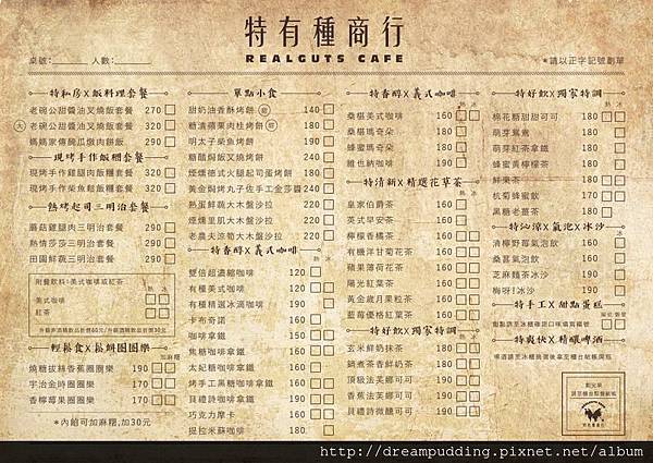 有套餐也有單點,主食跟輕食都有,可以連結到特有種商行的FB粉絲頁,有詳細的大圖喔^^