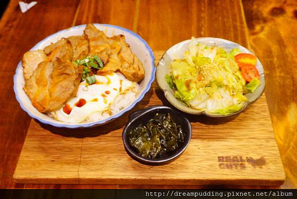 老碗公甜醬油叉燒飯套餐,NT 270元,套餐除了有叉燒飯之外還會多了漬菜跟和風沙拉,附咖啡或紅茶,也能以優惠價加價更換其他飲品。