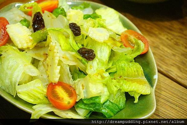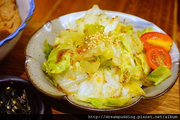和風沙拉加了和風胡麻醬,份量也蠻多的,醬給的很多,每片生菜都沾了醬。