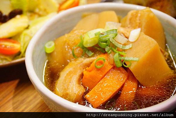 馬鈴薯燉肉帶點甘甜,料蠻多的,馬鈴薯跟胡蘿蔔都燉到軟熟,肉的話是五花肉薄片,吃到後來很想拌飯耶>////<