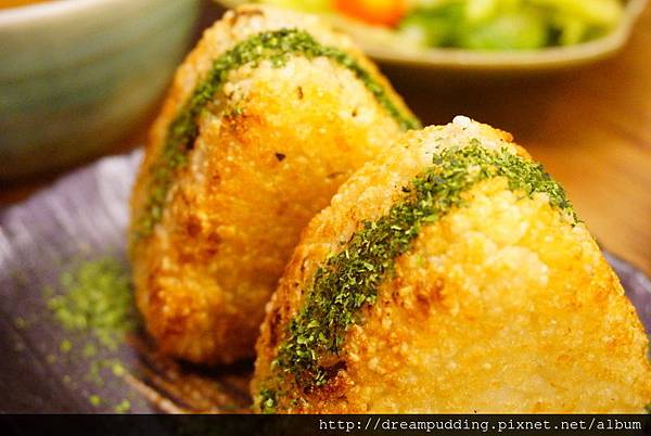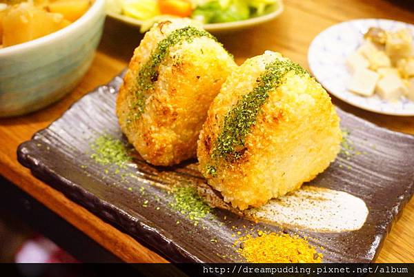 烤飯糰跟我想像中的不一樣,我本來以為是中間夾著一隻雞腿這樣>////<
