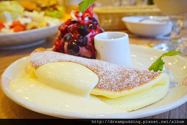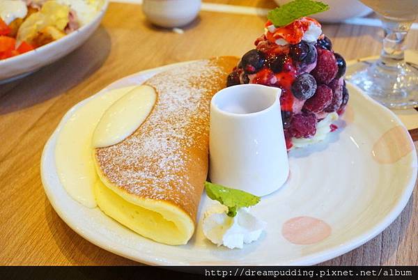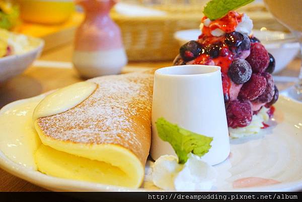 跟莓果口味相比,我個人比較喜歡檸檬淋醬耶,酸甘酸甘的增加了一絲清爽感,鬆餅也是一樣輕盈如雲朵。