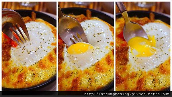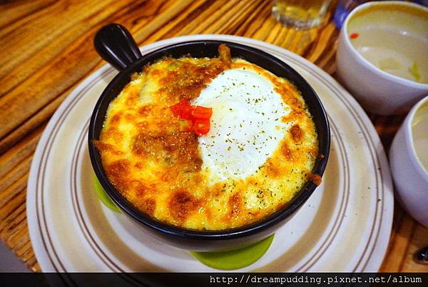 半熟蛋液跟焗烤起司還有濃郁的咖哩飯混在一塊吃,口感說有多濃郁就有多濃郁,超潤澤的,我喜歡^^