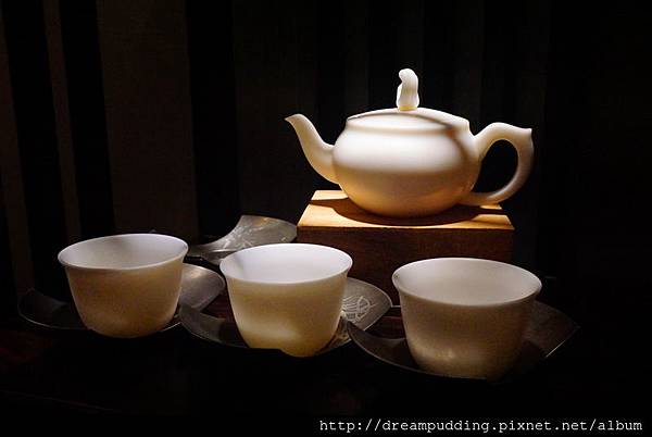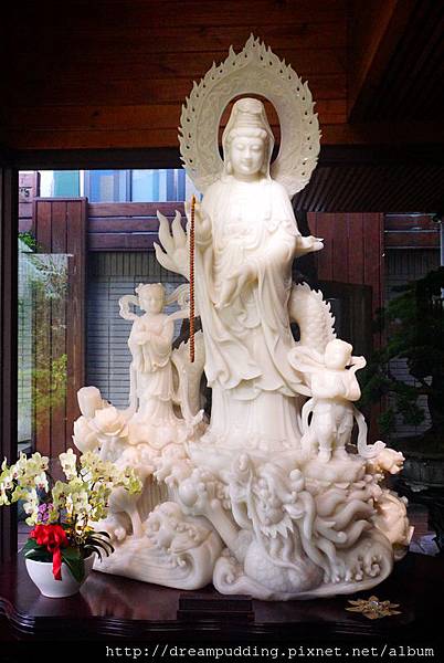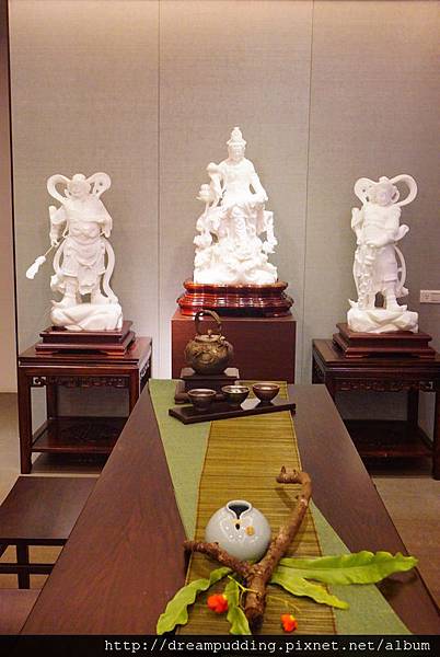 由於老闆本業為珠寶商,所以東方喜悅裡面有著許多老闆的私人收藏品,其中這座漢白玉觀音,莊嚴美麗,讓人看了便心存平安與寧靜。