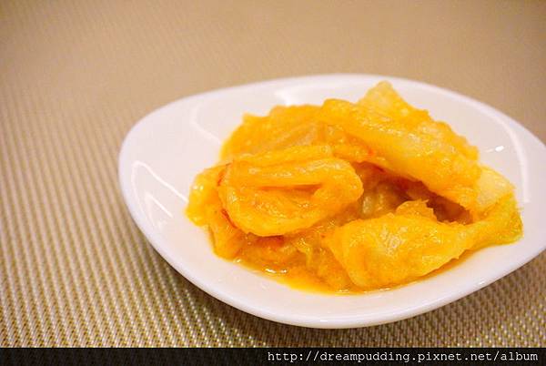 使用南瓜下去製作的黃金泡菜,爽脆微辛帶點酸甜甘,好吃耶!而手工醃漬的私房小菜,現場是可以購買回家的喔!友人說他當天買回家沒幾天就已經見底到一片不剩@@
