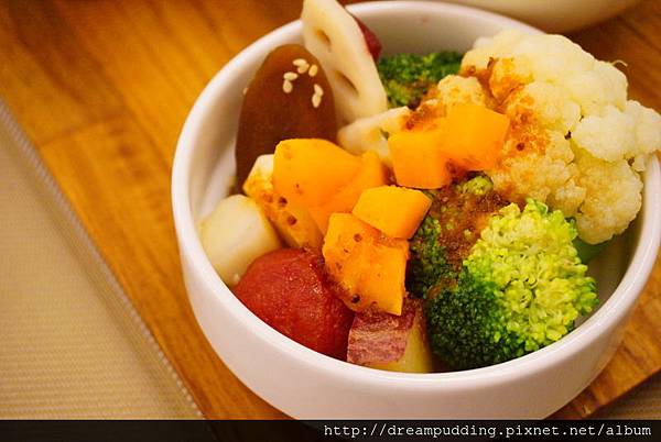 蔬果沙拉的花椰菜大朵新鮮,還有地瓜塊及梅汁番茄,整體清爽帶有層次感,那個梅汁番茄超好吃的,後來才知道原來她有販售,下次要來去買一罐回家。