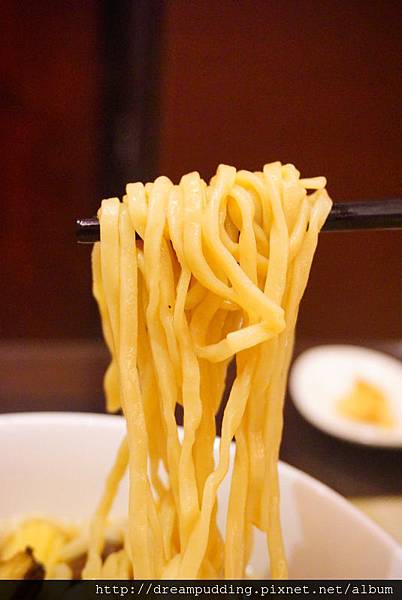 使用的麵條為蕎麥麵條,口感軟Q,不會因為放久而吸湯變到太軟,是好吃的麵條阿。