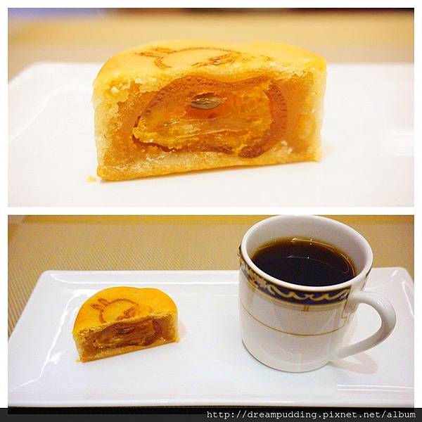 咖啡也是清冽順口,酸苦得很細微且平衡,是好喝的黑咖啡;甜點是金桔酥,吃得到金桔的果肉,配咖啡真是洽到其分。
