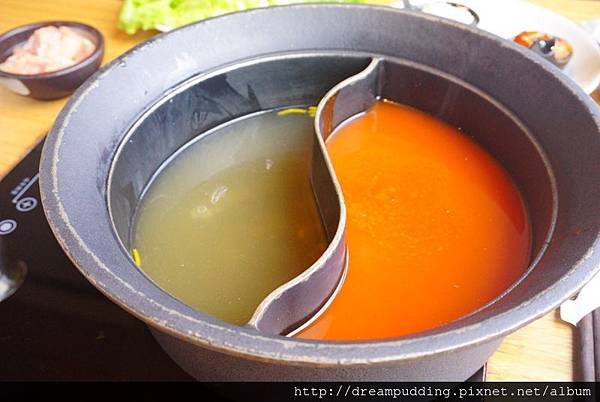 而由於是電磁爐的關係,所以受熱區有限制,在擺鍋子的時候要注意別把鍋子移動到不是受熱的區域喔,不然會很慢才滾,我們那天辣鍋移得太旁邊了,所以湯頭很久都沒滾,後來是服務人員幫我們喬好。