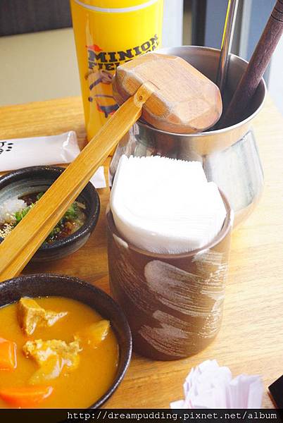 還有白飯,一旁還有咖哩醬,咖哩飯好好吃,我們也都吃了一碗,把自己吃到了8分飽.......................