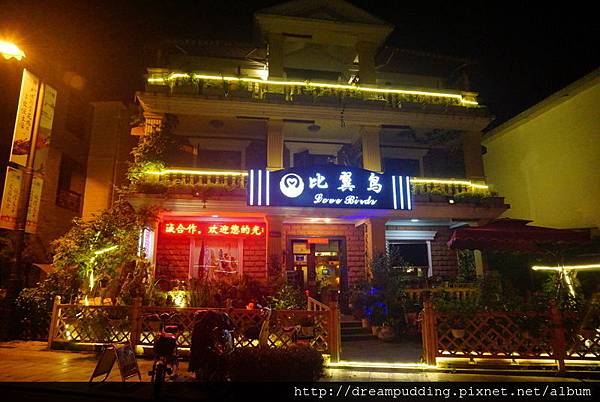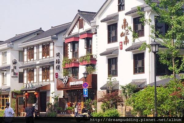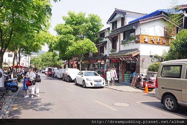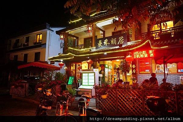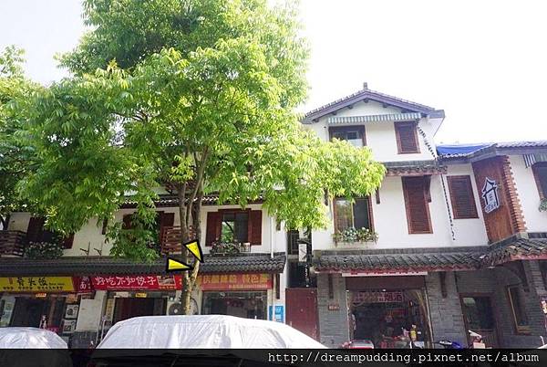 青芝塢裡大多是餐館及民宿、飯店,每間都很古色古香,名字也很詩情畫意,整個街裡漫著一股中國文青風。