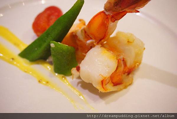 大蝦則是使用明蝦,跟商業午餐的草蝦比起來,明蝦的口感比較細緻,新鮮跟Q彈緊緻度也更加明顯,當然,個頭也更大一些。