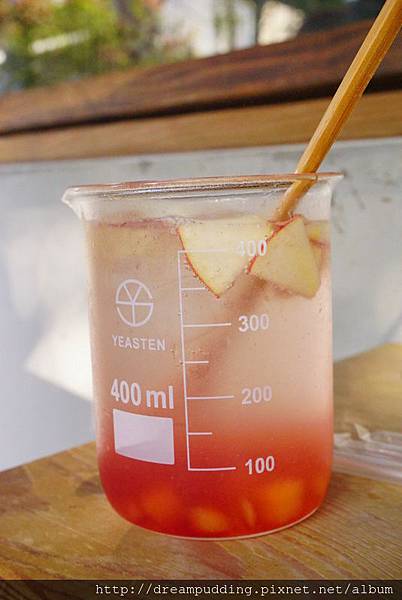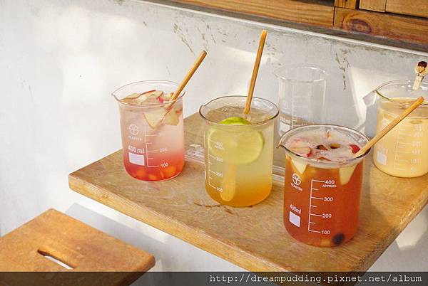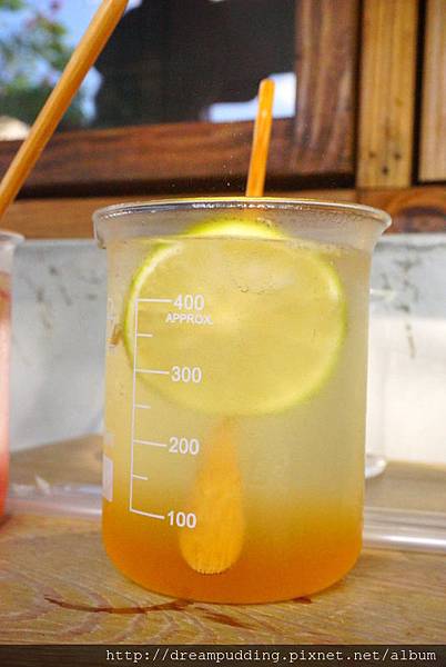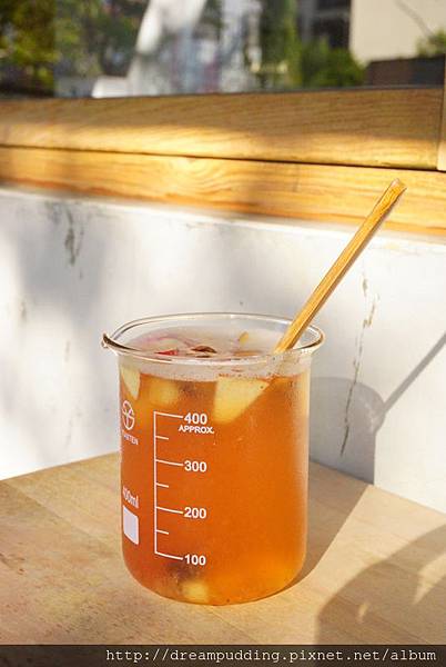 冰飲都是用量杯裝,清新透明的很美麗;友人說冰茶跟氣泡飲都很不錯喝,微甜的很清冽自然。