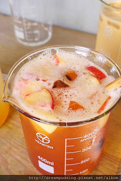 覆盆子蘋果氣泡飲、蜂蜜檸檬氣泡飲、藍莓蘋果冰茶。