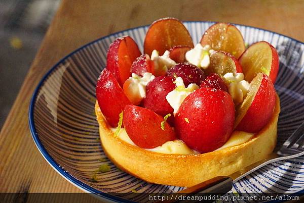 紫葡萄鮮脆多汁,擺的很滿,口感新鮮,內餡的卡士達奶油也不甜膩,塔皮不是很酥硬的那種,整體口感還不錯。