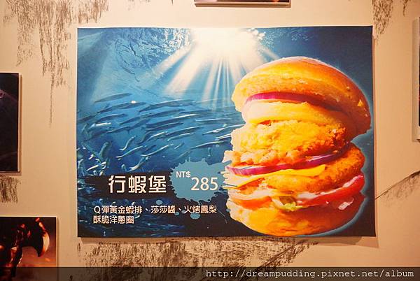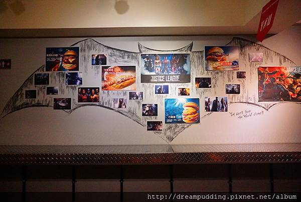 牆面有搭配正義聯盟而推出的漢堡系列介紹。