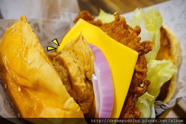 因為我太迷戀花生醬了,所以點漢堡的時候醬加價點了花生醬,不過之前都是吃牛肉堡搭花生醬,這次點炸雞堡搭花生醬,吃到後面就會覺得有點小膩,我搭錯了@@。