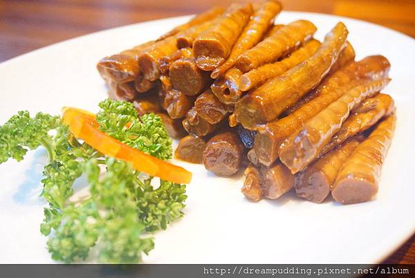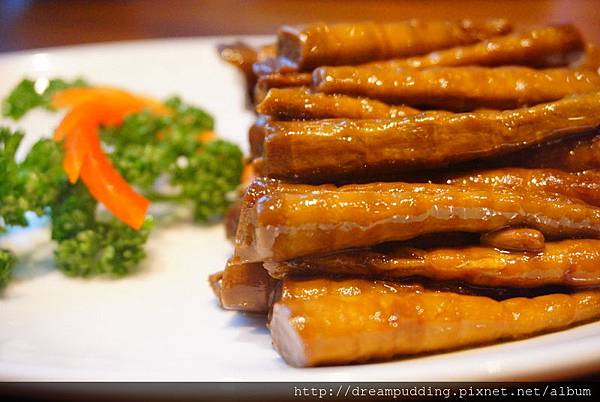 這道是涼菜,口感微甜帶滑,夾的時候常常從我筷子上滑下去,夾一根都得夾好幾次@@
