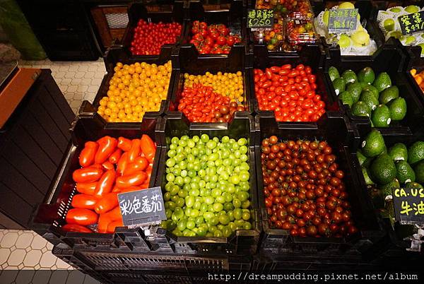 網路購買只有台灣或是進口的當季水果部分,但是實體門市則多了許多溫室蔬果系列。