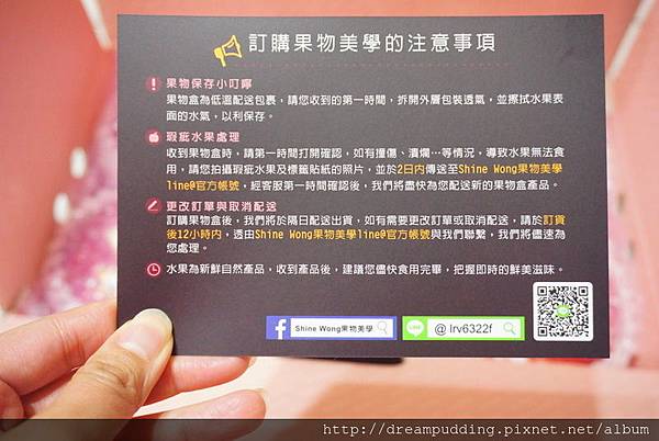 禮盒會附上水果保存細項提醒及小賀卡,可以讓送禮人寫上祝福的字句。