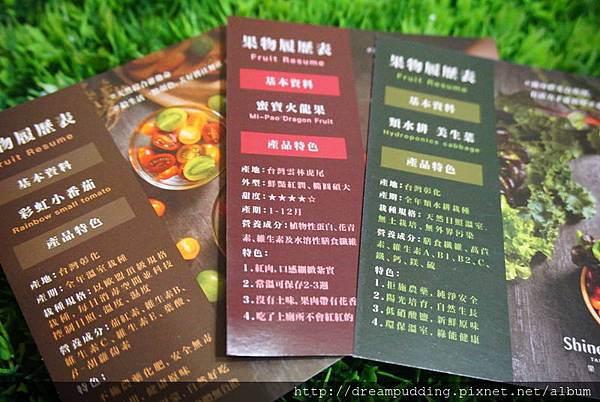除了進口水果禮盒,其他像是彩虹番茄、類水耕蔬菜及火龍果都是果物美學的明星商品,還有果物履歷表簡介,標示了這些蔬果的來源地,讓人看了安心,吃的放心。