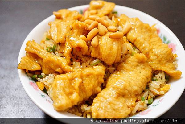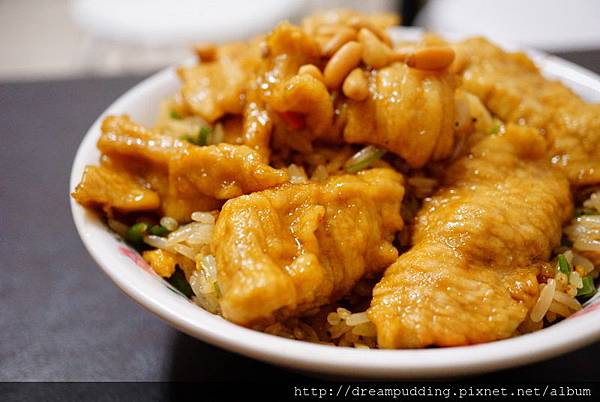 炒飯跟蝦仁飯一樣,但配料換成了松阪豬,松阪豬有先醃過,口感軟Q且入味,吃到後面會覺得口味比較重。