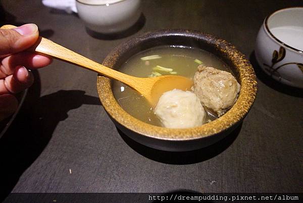 丸子緊緻帶Q,手工感十足,湯頭清甜,底部有胡椒,會沉澱,喝之前可以拌勻一下。