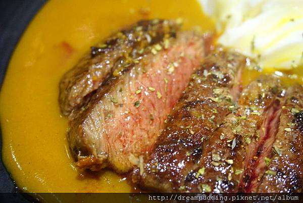 這牛肉超好吃!外皮有著細微炙烤過後的酥,嚐起來Q彈軟嫩還有些微的嚼勁及肉汁,好吃極了,男友超喜歡的。