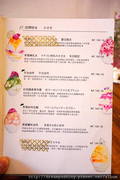 主要販售刨冰、甜點跟部分飲品,也可以預訂尺寸較大的甜點生日蛋糕喔!